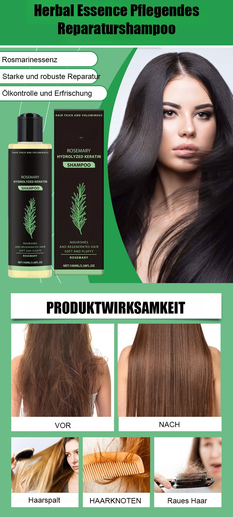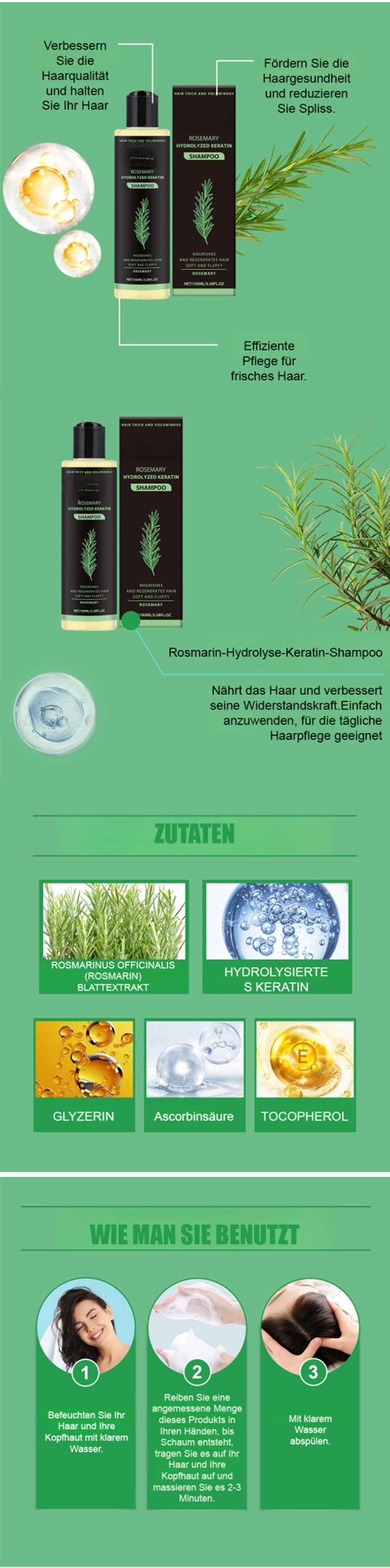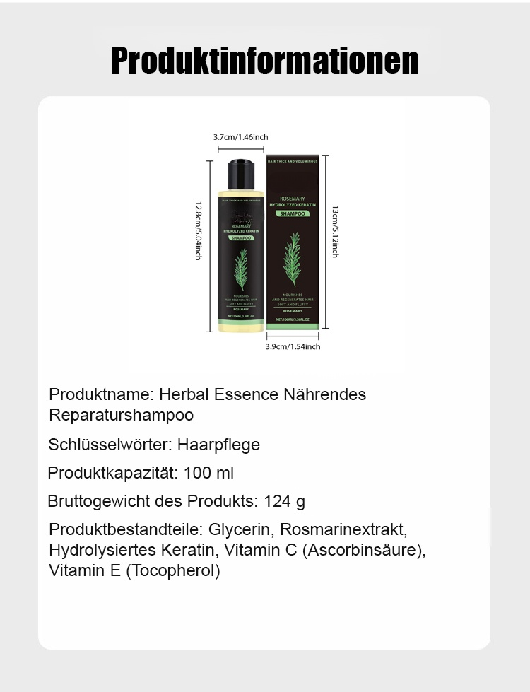 Rosmarin Keratin Shampoozur Haarverdichtung | Klinisch geprüfte Formel | Vitalität für dünneres Haar 🌿✨